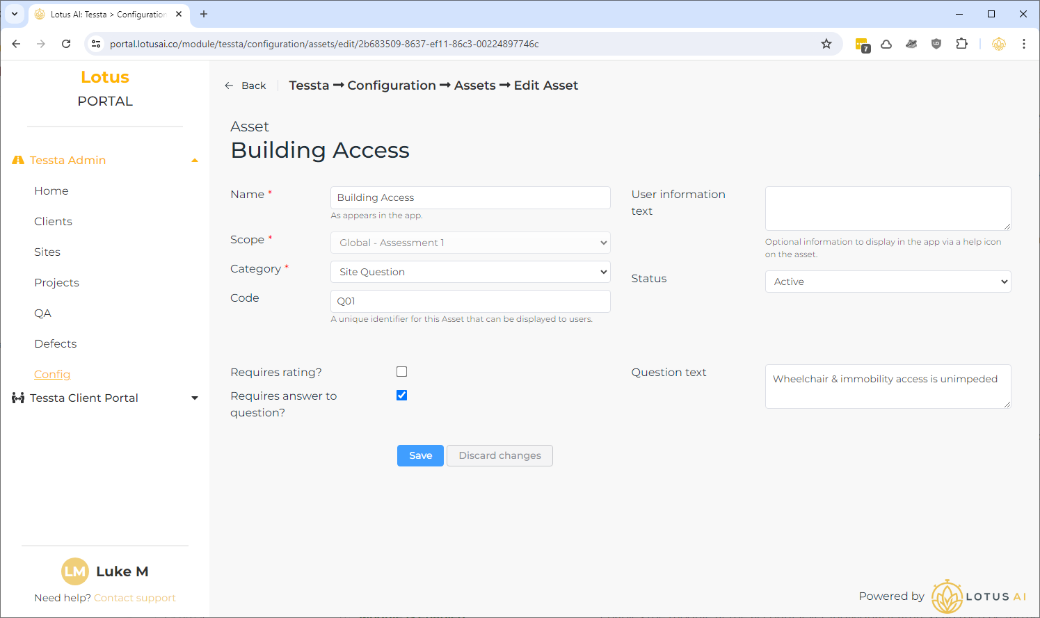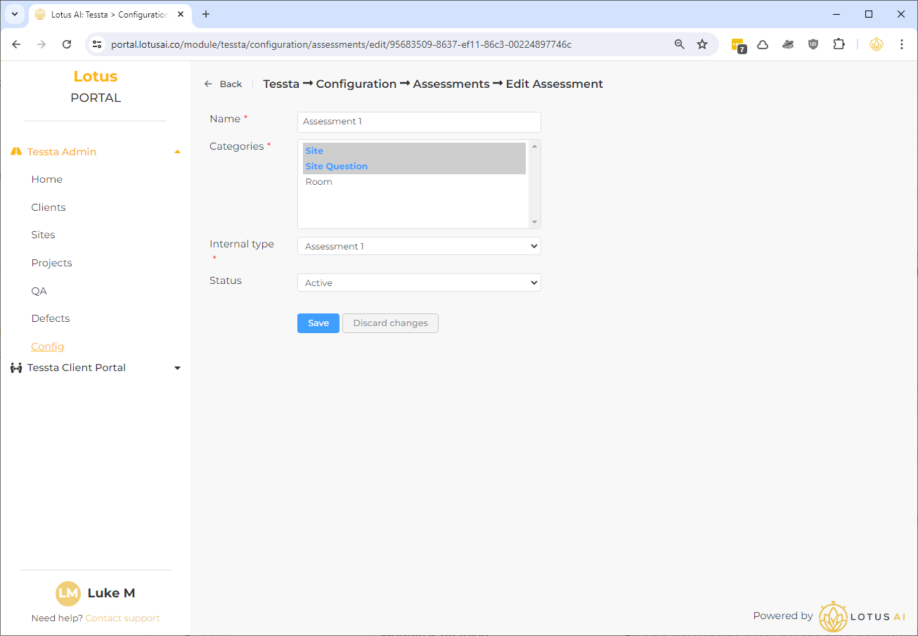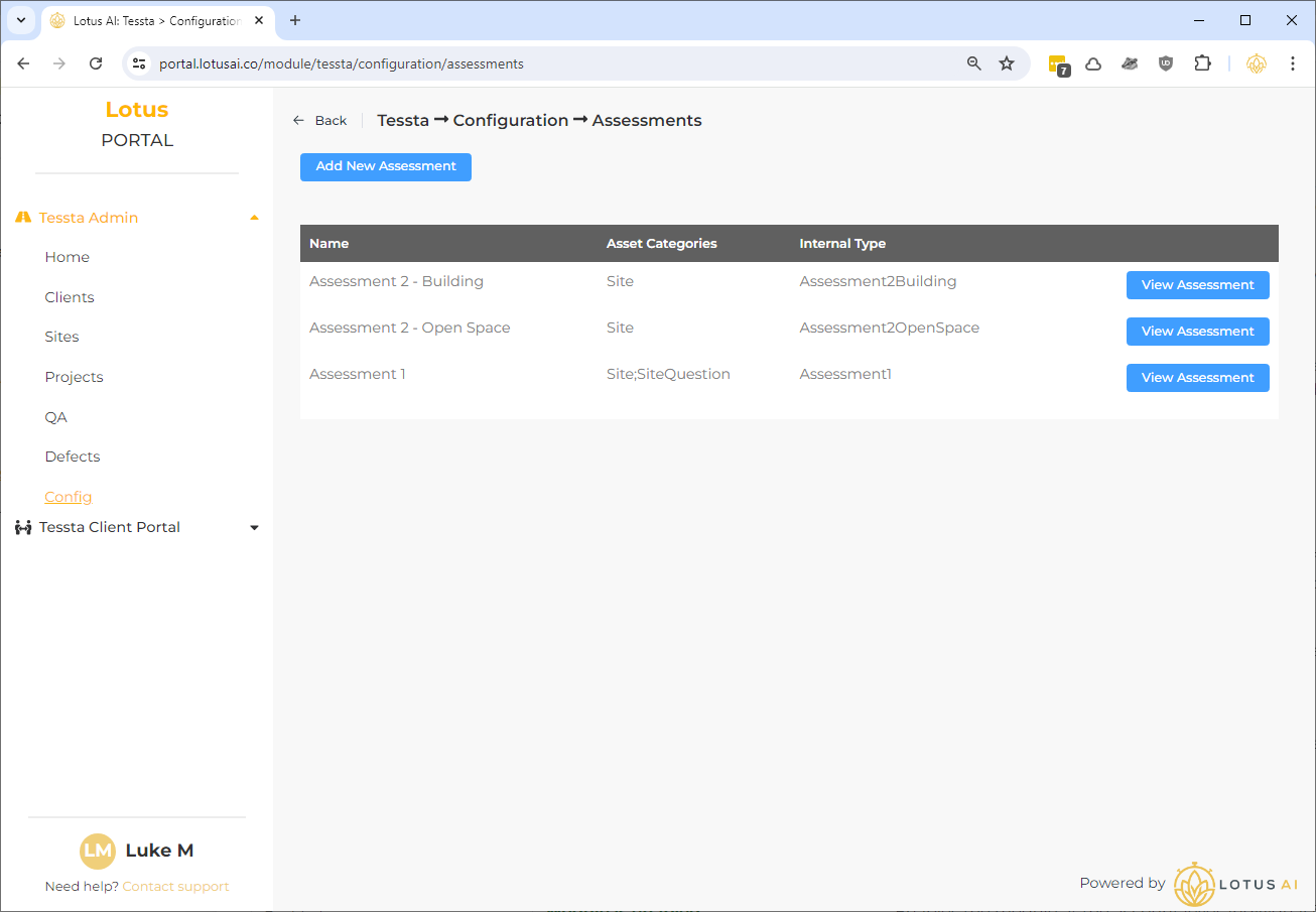 I have pre-configured the 3 common assessment types: “Assessment 1”, “Assessment 2 – Building” and “Assessment 2 – Open Space”.