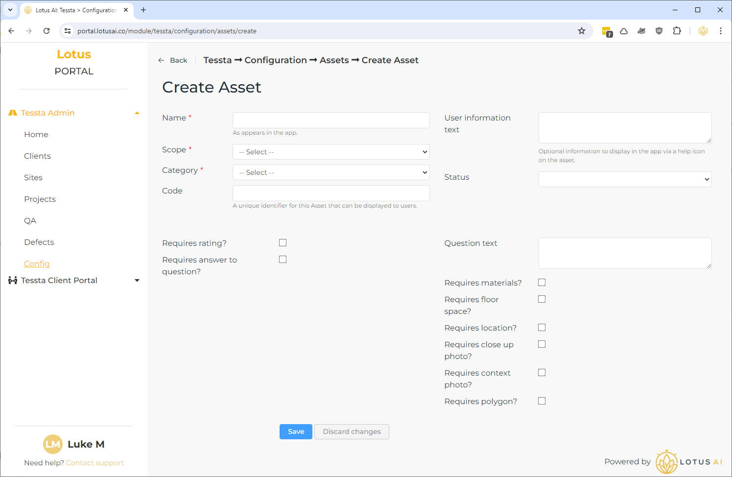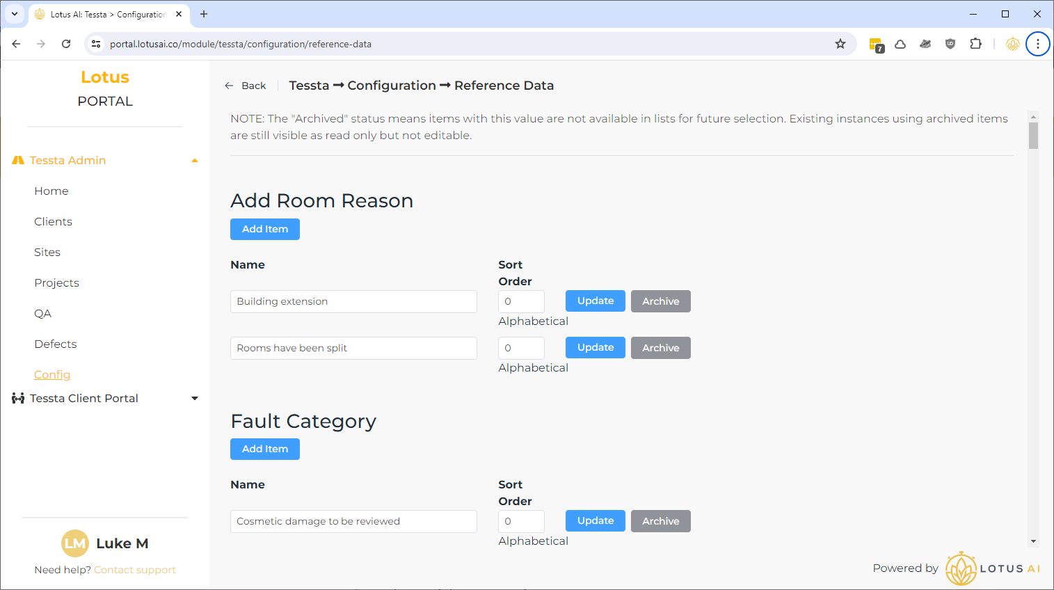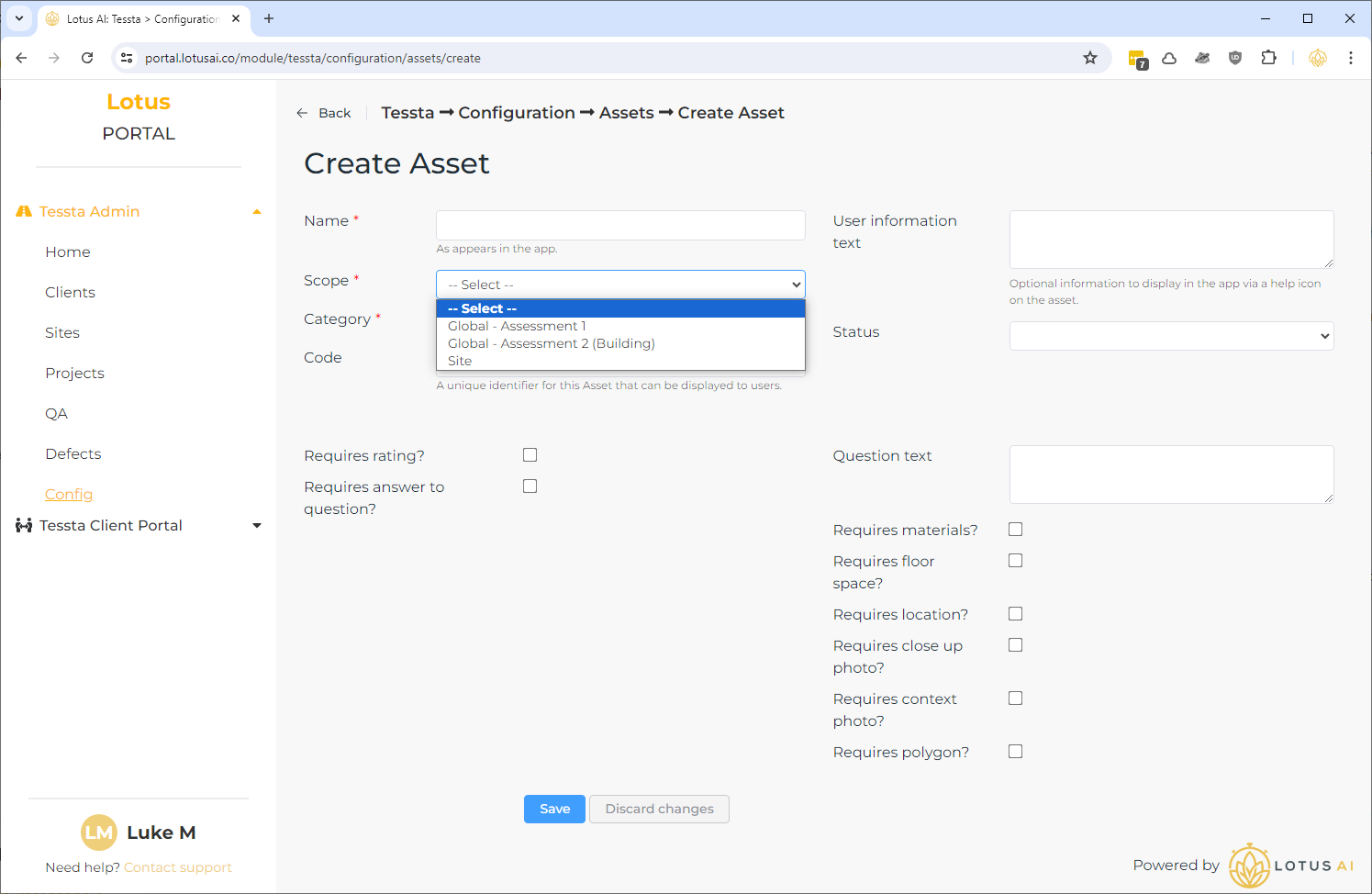 Assessments, Assets and Reference Data can be managed via the “Config” page.
