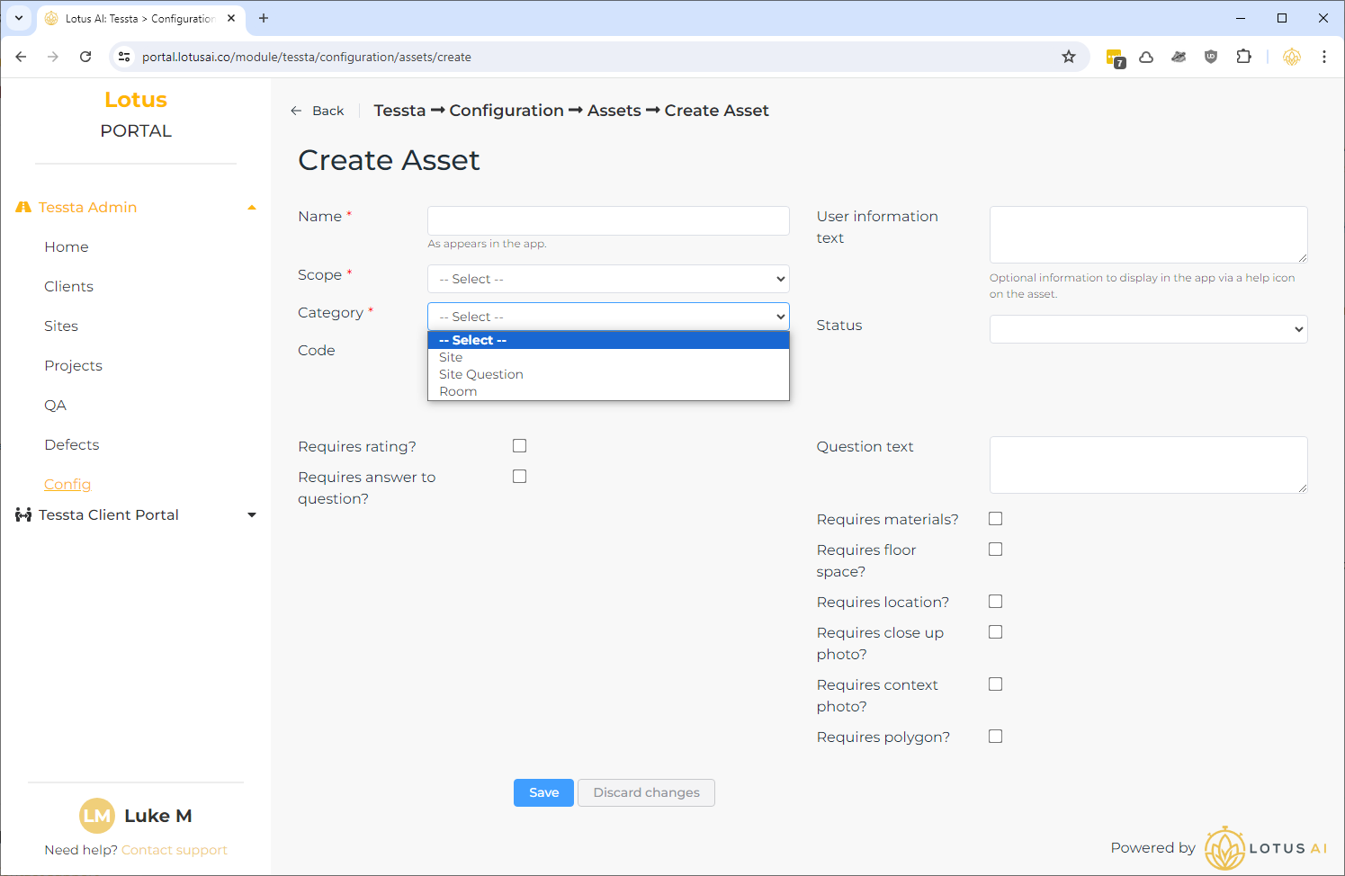 - How it works: A site can have a whole range of assets assigned to it. Each asset is of a particular “asset category”. When setting up a site in a project, we say “in the project, we want this site and we want to ran this assessment for it”. When that particular assessment for the site appears in the app, only the assets of the same “asset catergory” as those selected in the assessment will appear.