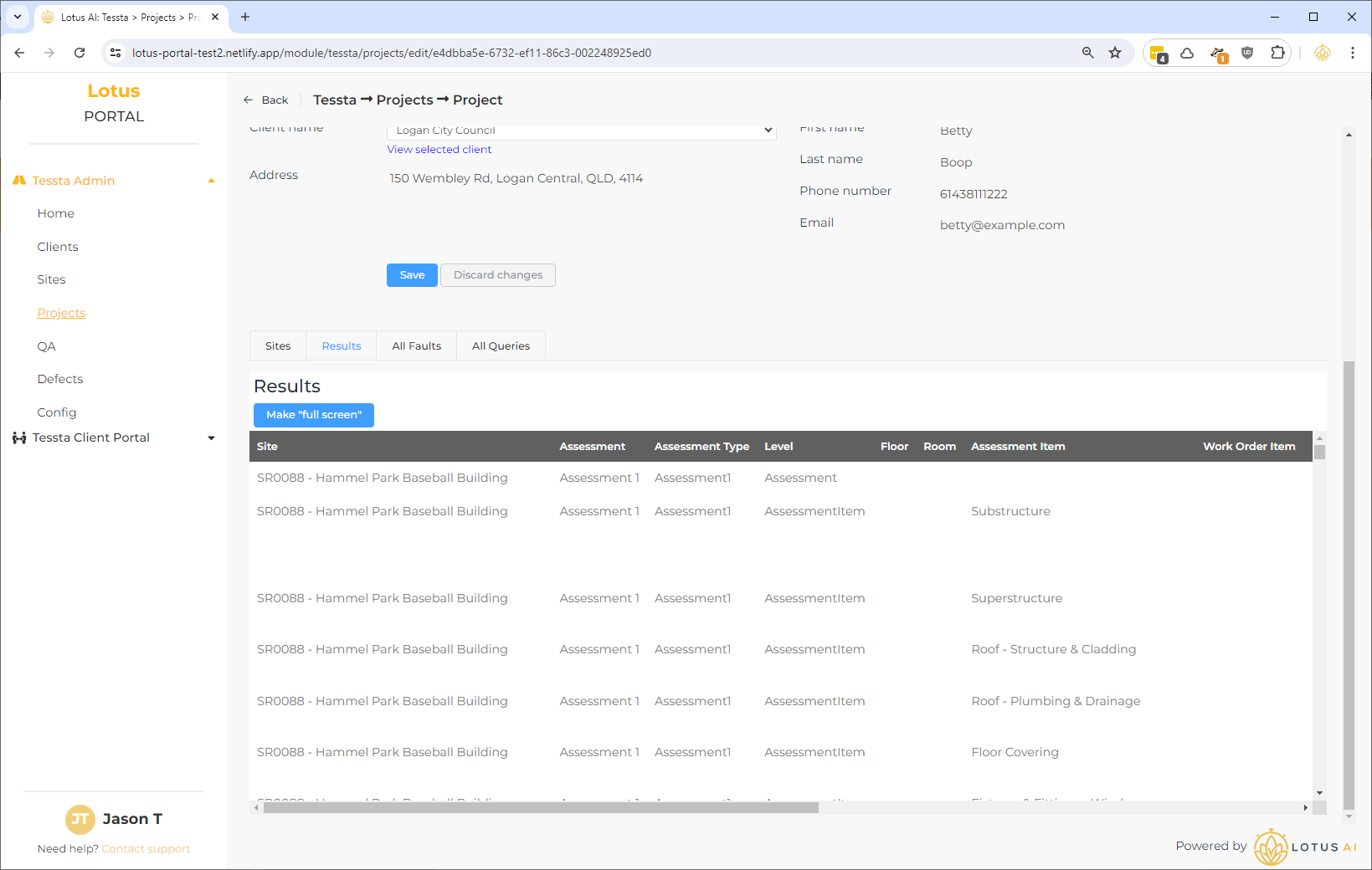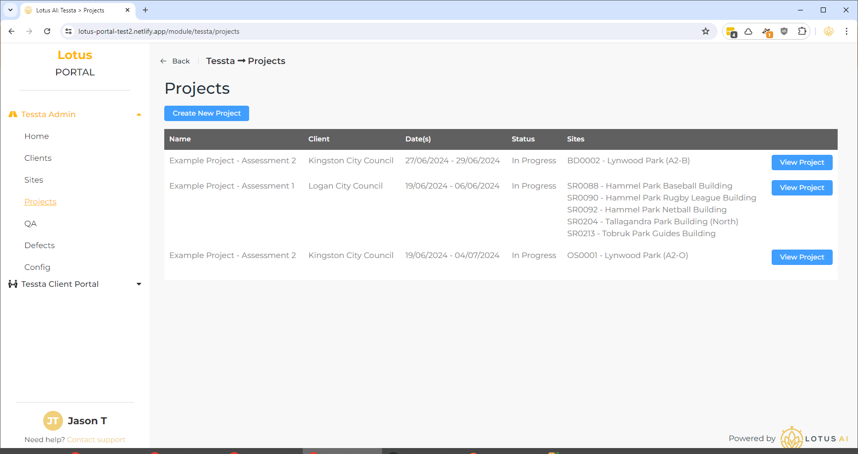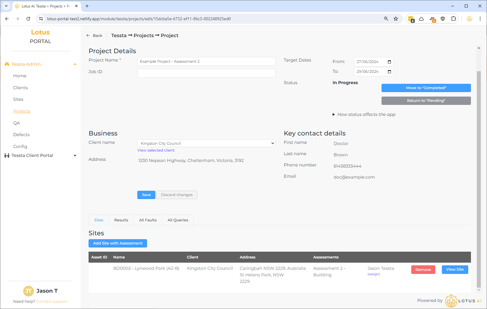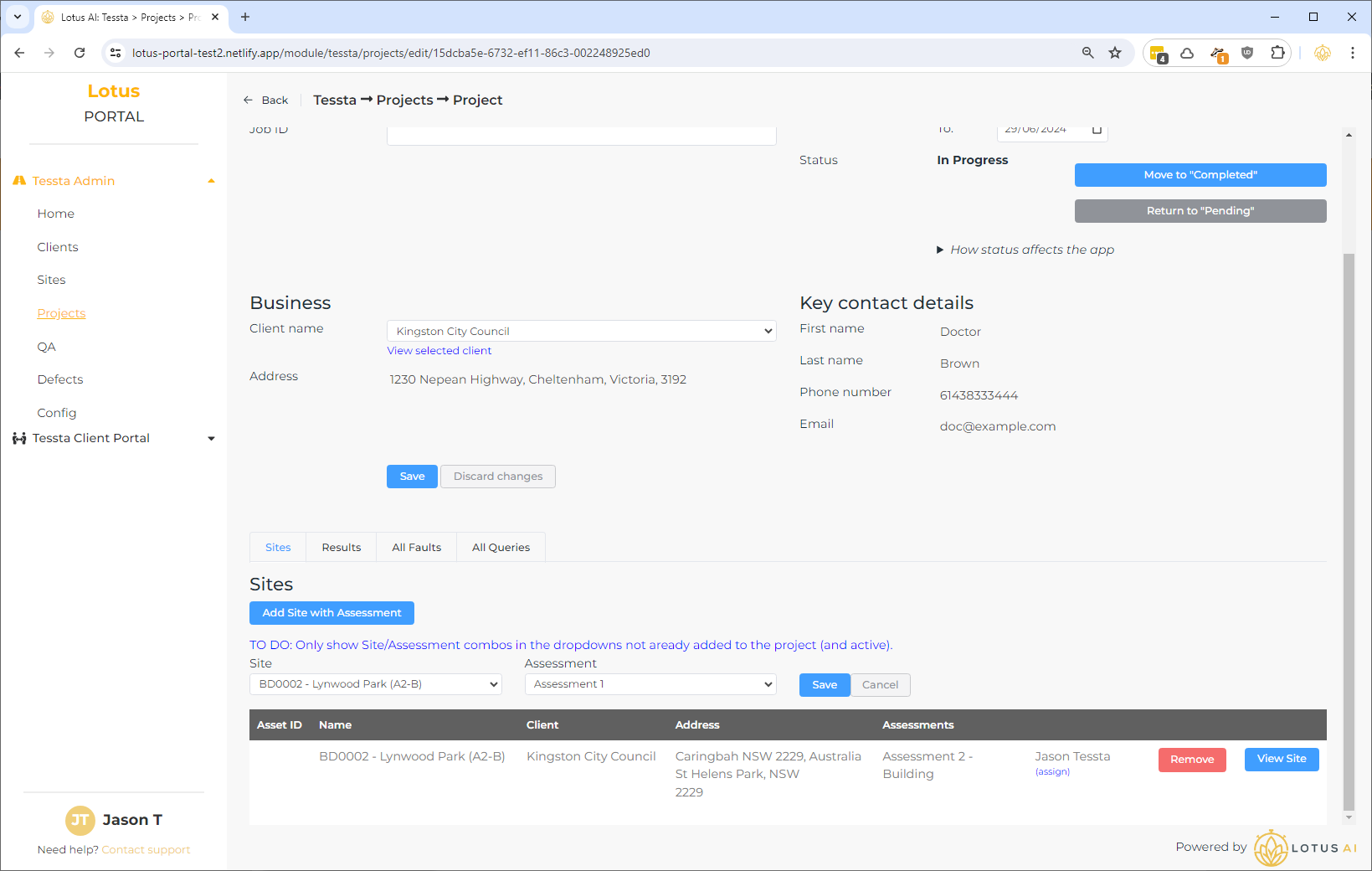 After a project is first saved you can start adding adding site/assessment combinations and assigning to a person: