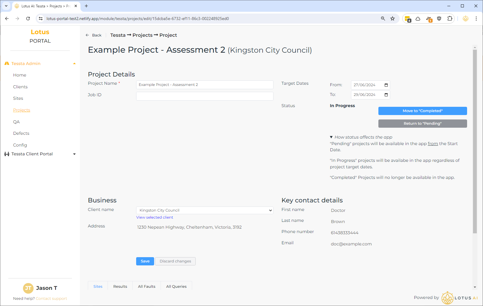 “Target Dates” control when assessments for the project appear in the app. Assessments will only appear once the “From” target date has been reached (regardless of whether the status is “Pending” or “In Progress” – this can be refined after some initial testing).
