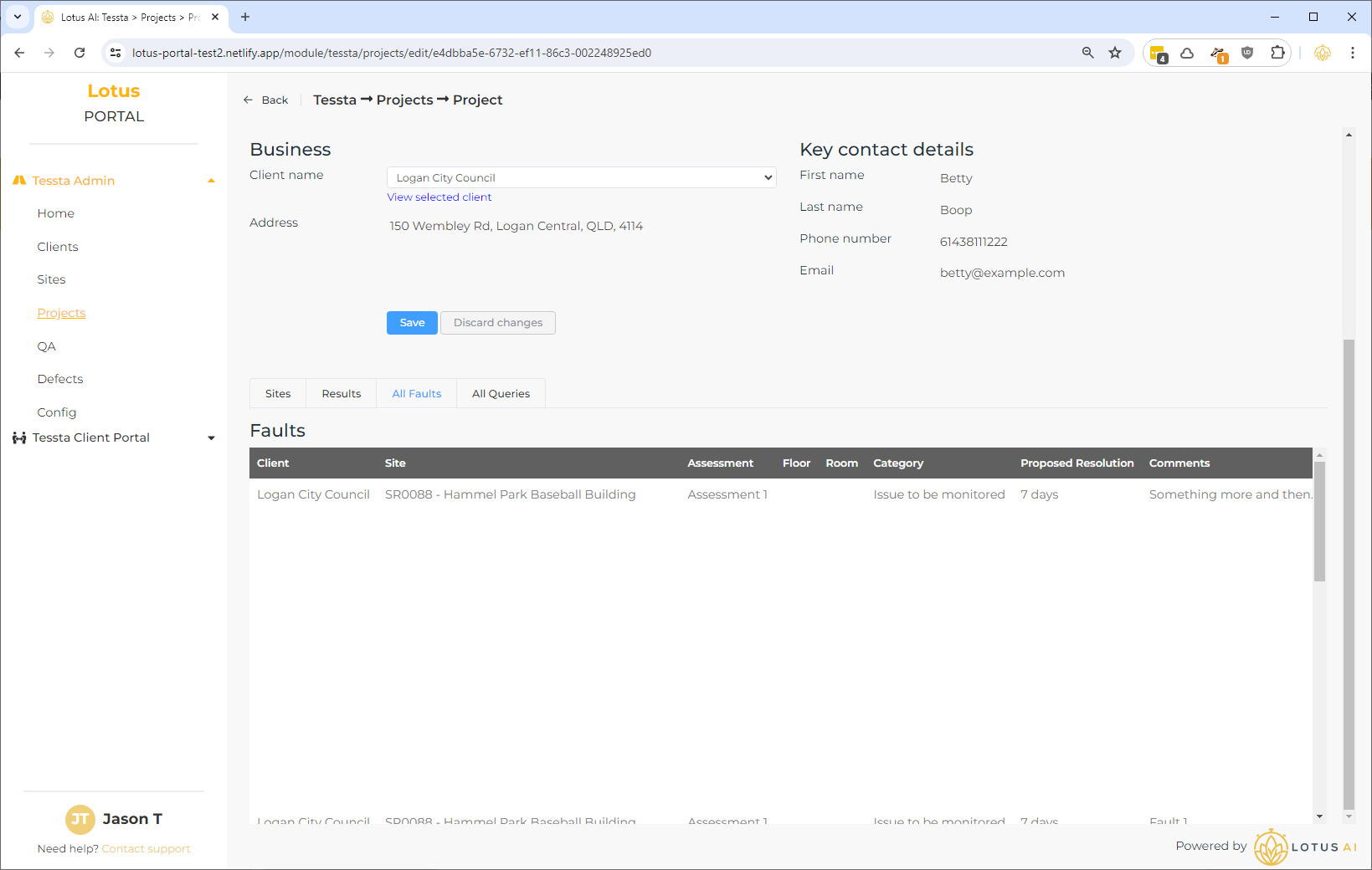 All faults recorded against a project can be viewed in the “All Faults” tab: