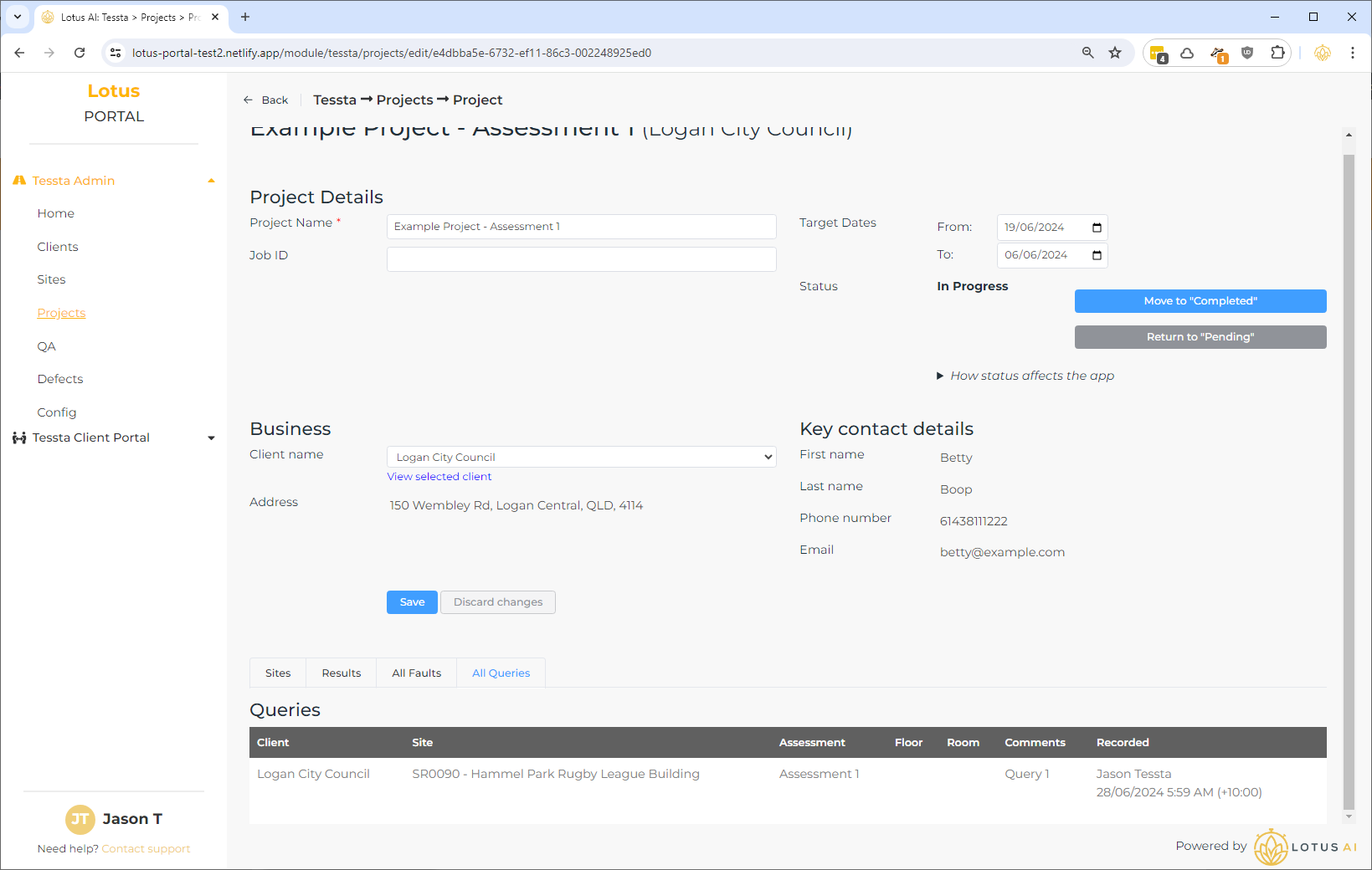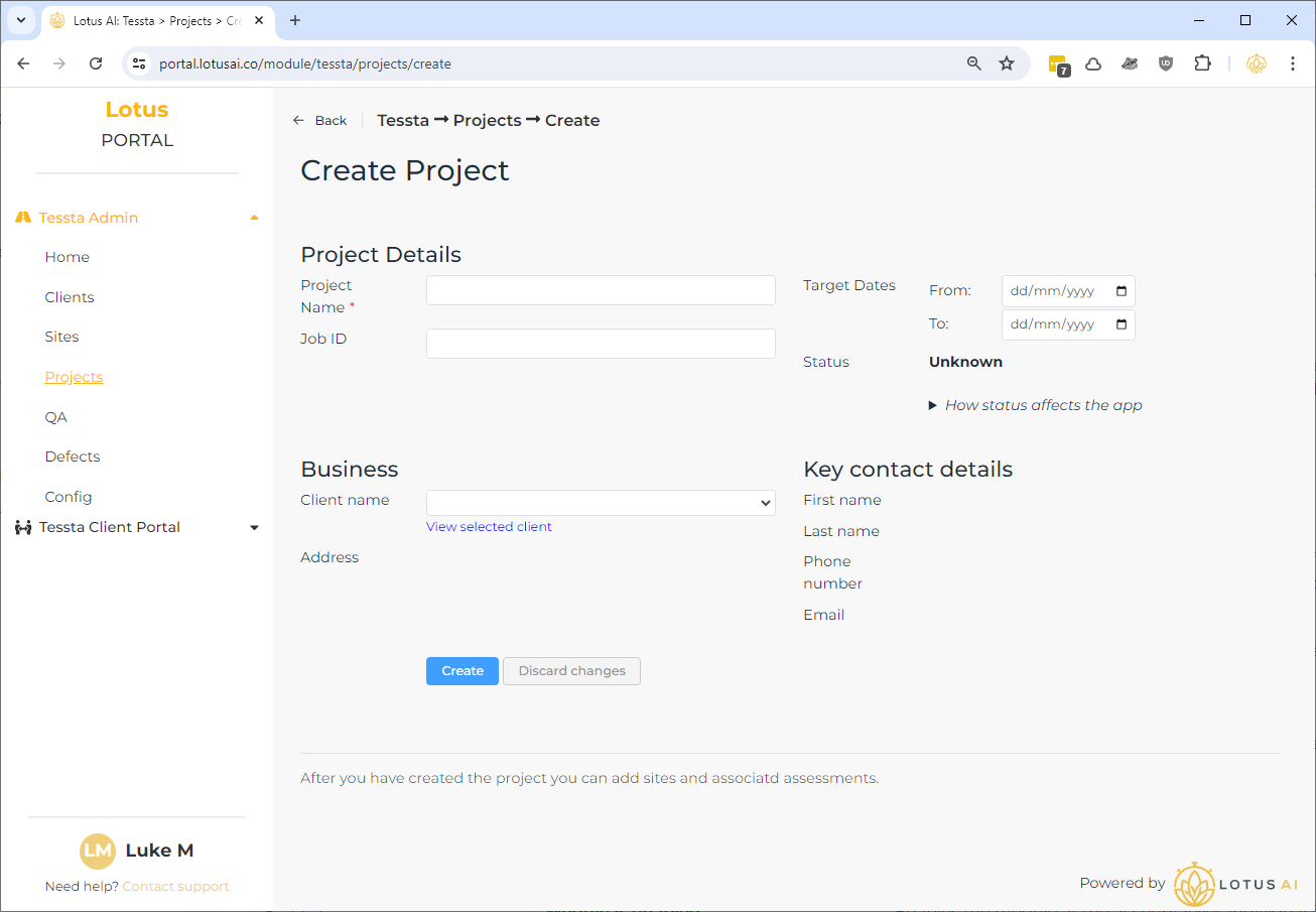 You need to save the basic details of a project before adding sites and assessments, and assigning to a person.