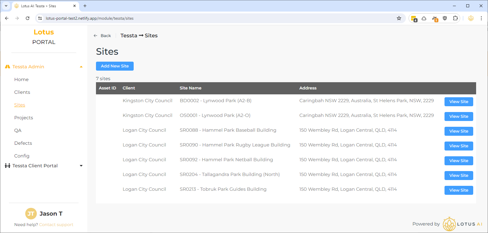 A client can have multiple sites.