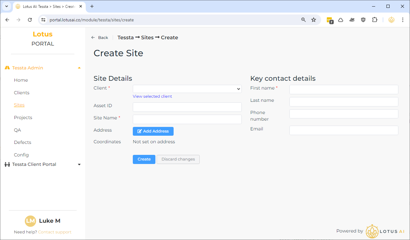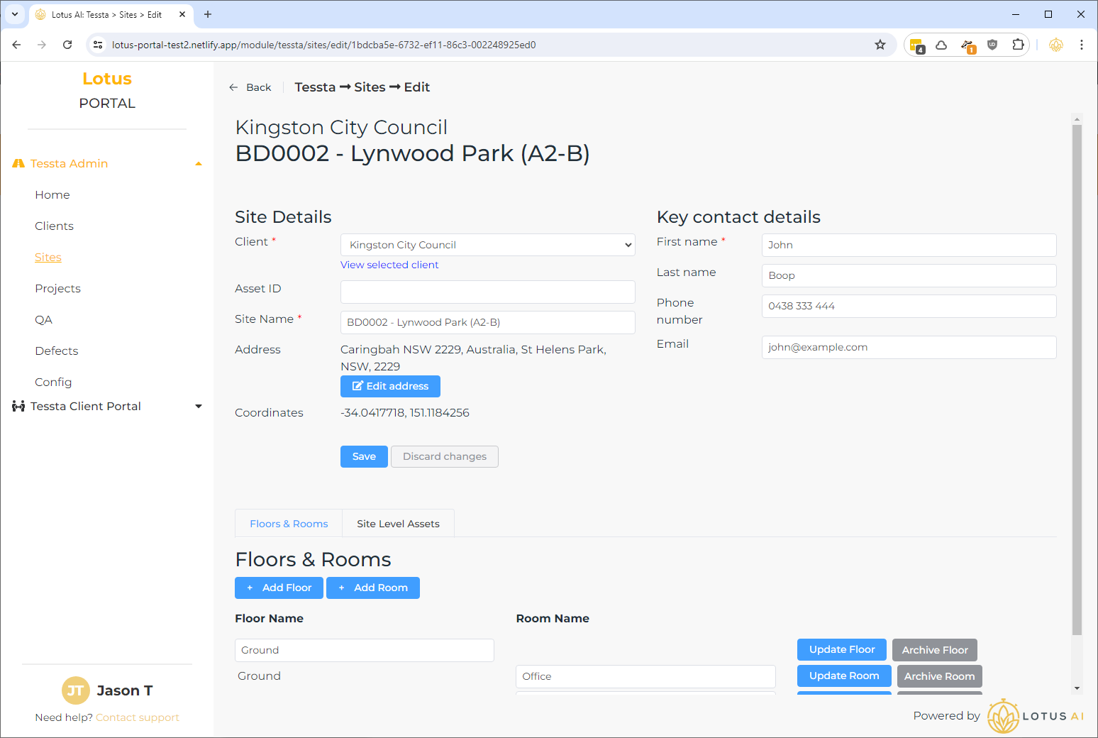 Add floors and rooms via the “Floors & Rooms” tab as required (creating and saving a site for the first time).